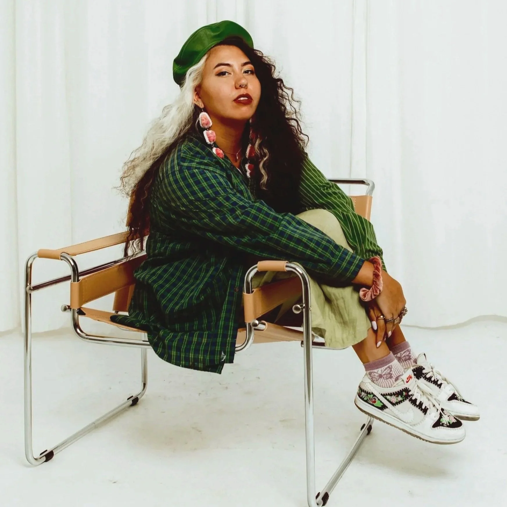 Nishina is a beadwork artist based in Brooklyn, focusing on modern designs with traditional materials. She is most known for tufted earrings with statements such as Land Back and Awas. She is an emerging fashion designer with a focus in upcycling and traditional motifs from Haudenosaunee patterns. She is the Artist in Residence at Relative Arts NYC.